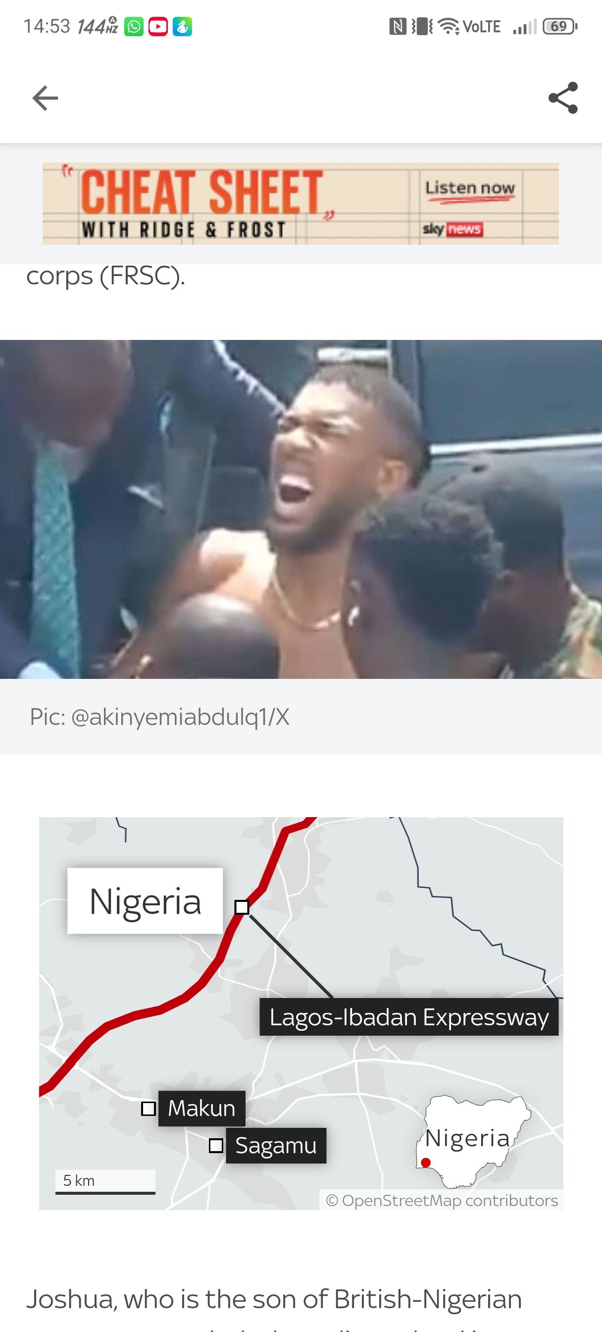 Anthony Joshua involved in serious car crash