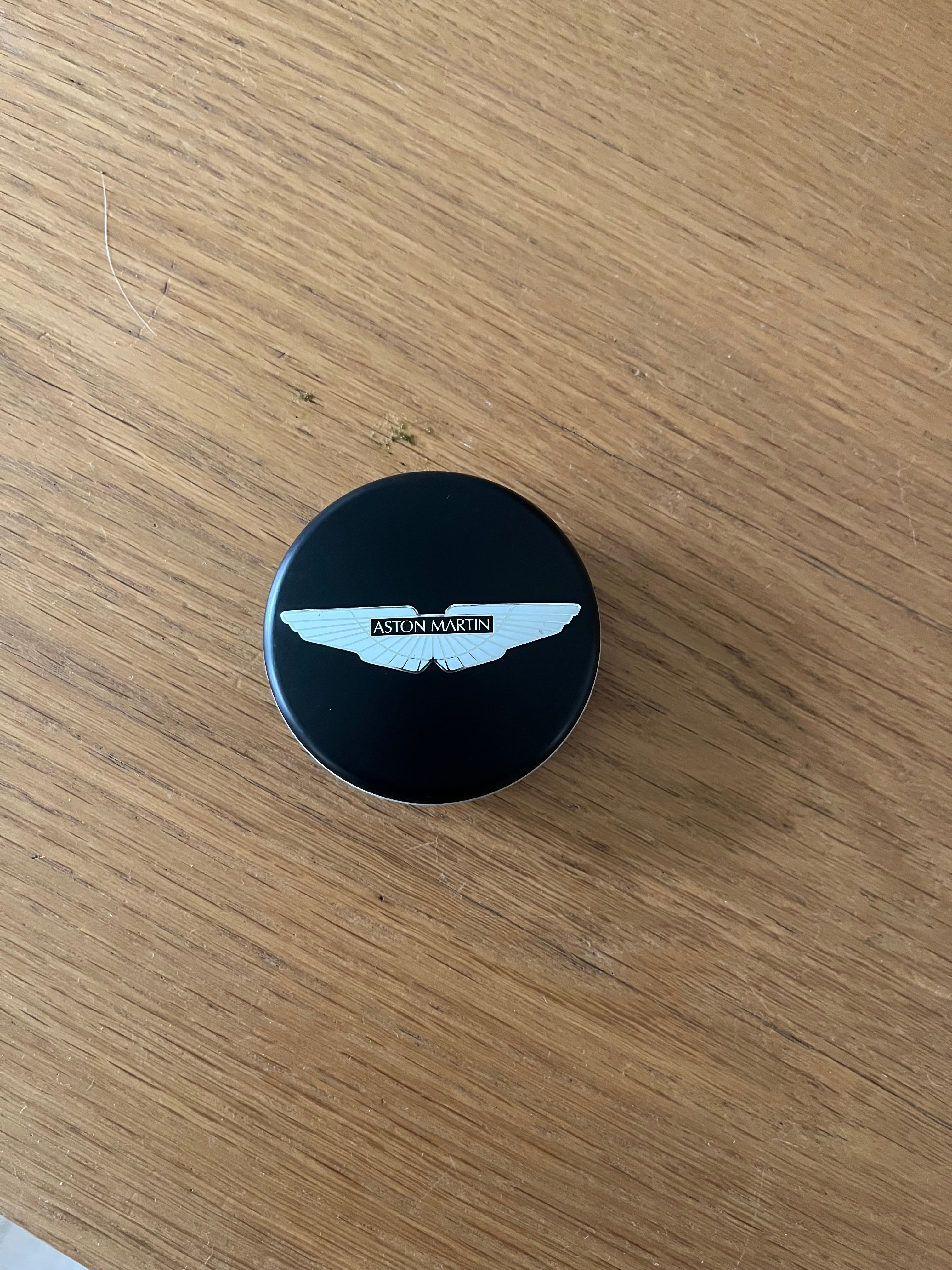 First is V12 Vantage specific I think as it s a black rather than green wing version of the mat black centre caps (earlier version without the chrome outer ring)
