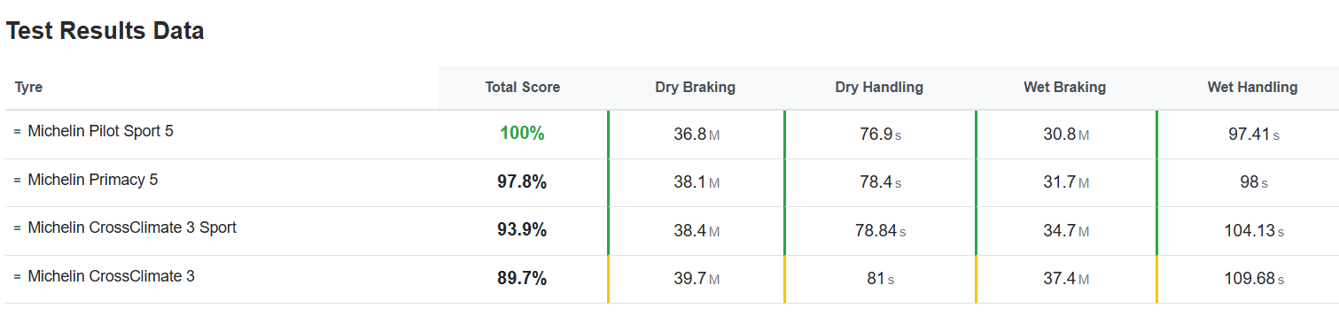 Getting better, but still compromised. If required, those braking differences could make quite a difference.https://www.tyrereviews.com/Tyre-Tests/Michelin-Cr...