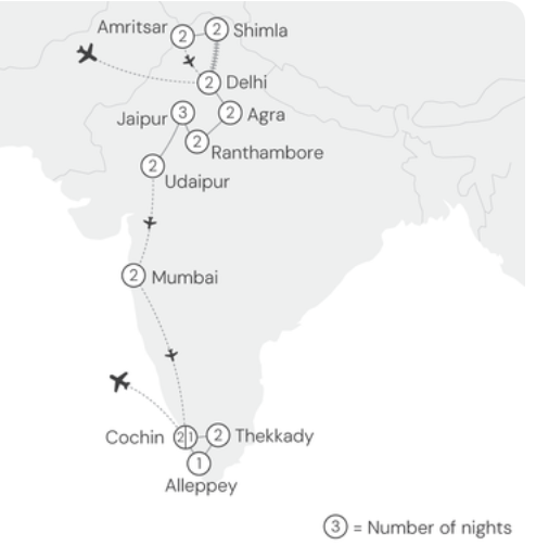 We did the "Grand Tour": https://www.distantjourneys.co.uk/india-tours/gran...