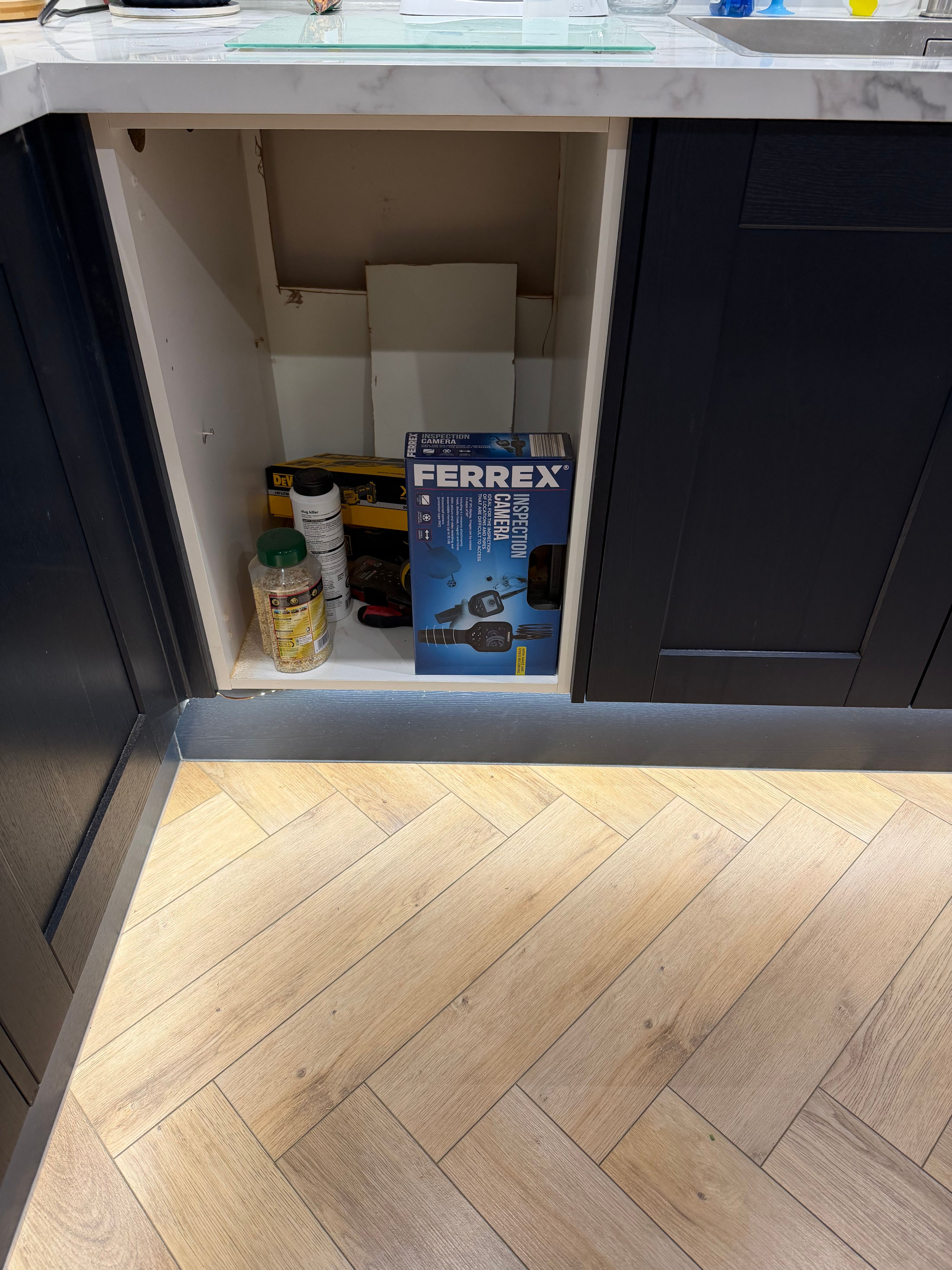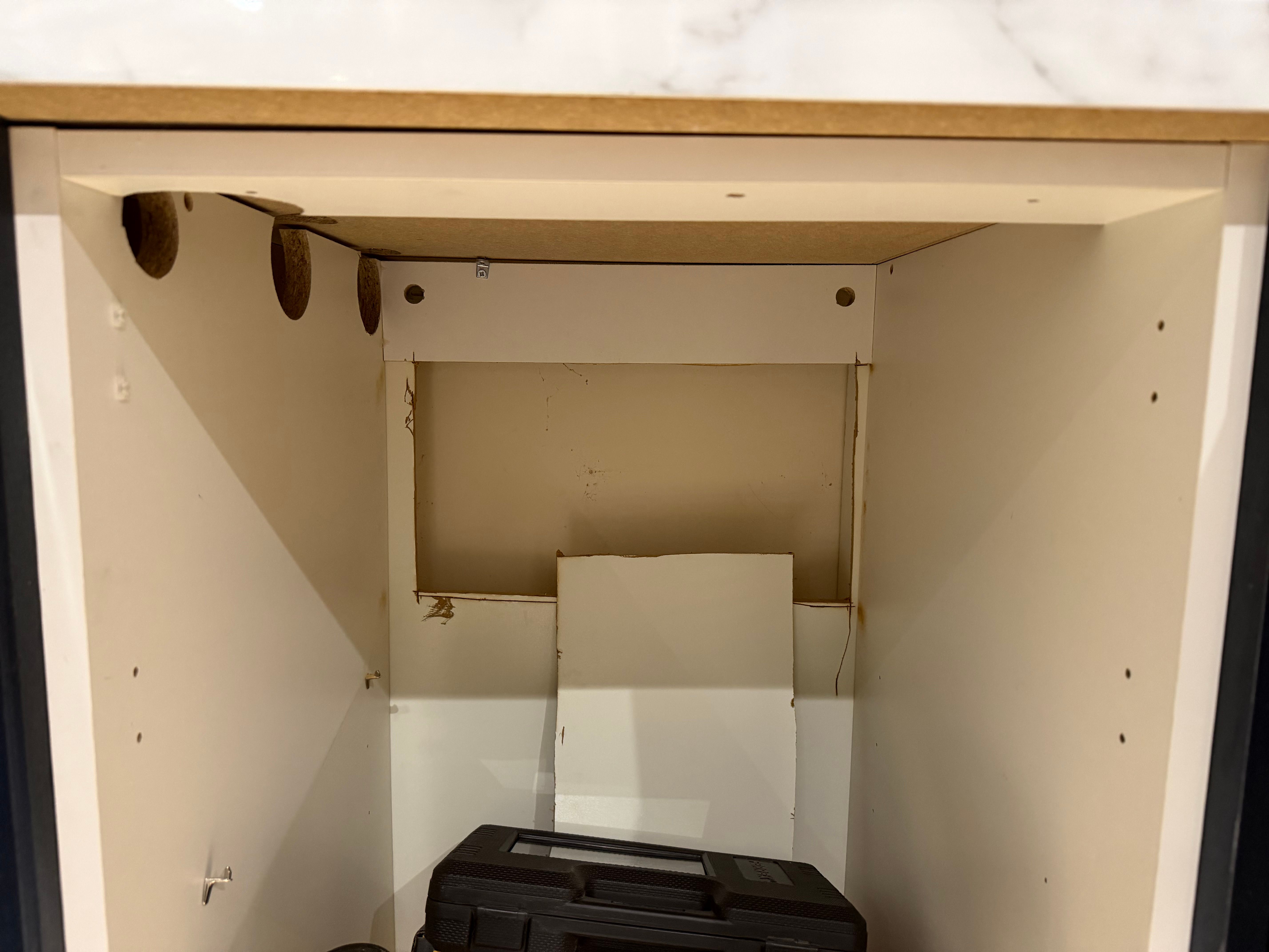 Thanks that’s a good call. Found two screws hidden underneath here. Again those screws were only fixed into the end panel and weren’t long enough to secure 3 18mm boards together. In total found 4 screws on the cupboard under the sink and zero in the cupboard I want to take out. Hasn’t changed anything in terms of moving the unit out though There could be screws beneath them