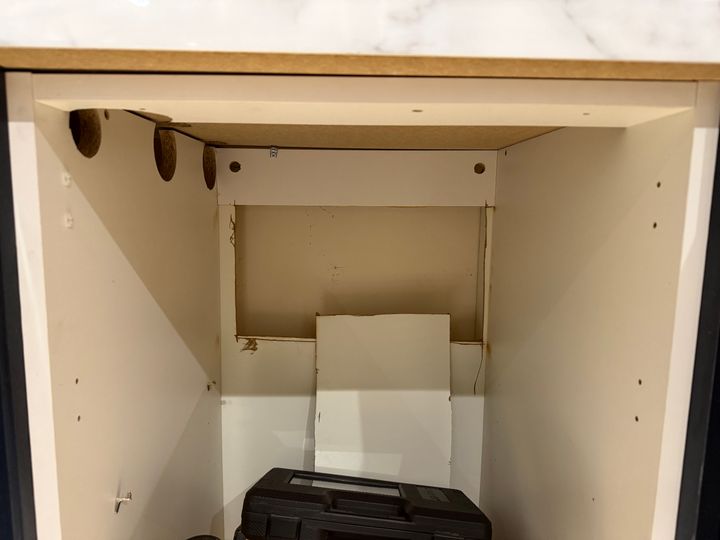I’m taking out a kitchen cabinet to install a dishwasher and what I thought would be a simple job has me scratching my head.