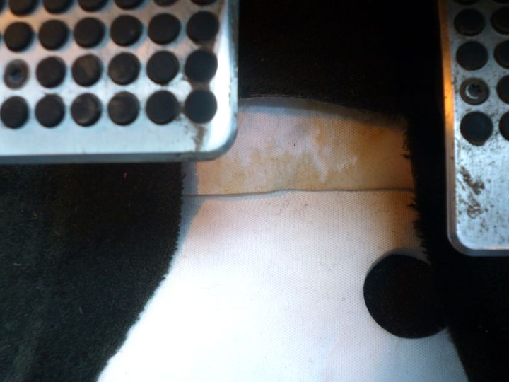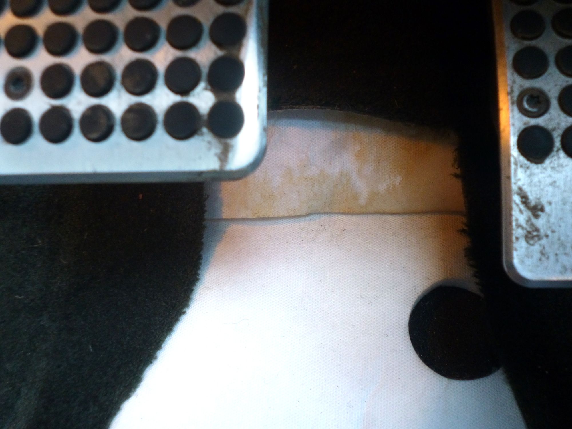 Between the pedals - slightly damp: