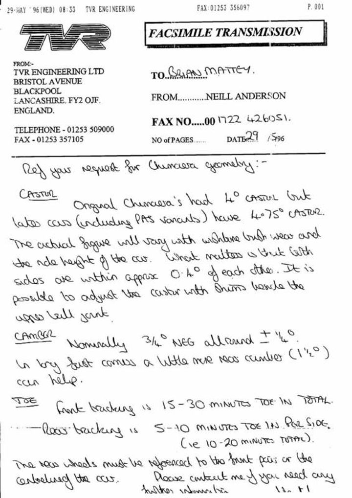 Its beneficial to let someone familiar with setting a TVR up loose on it with regards to checking the geometry when your done, can make a big difference.