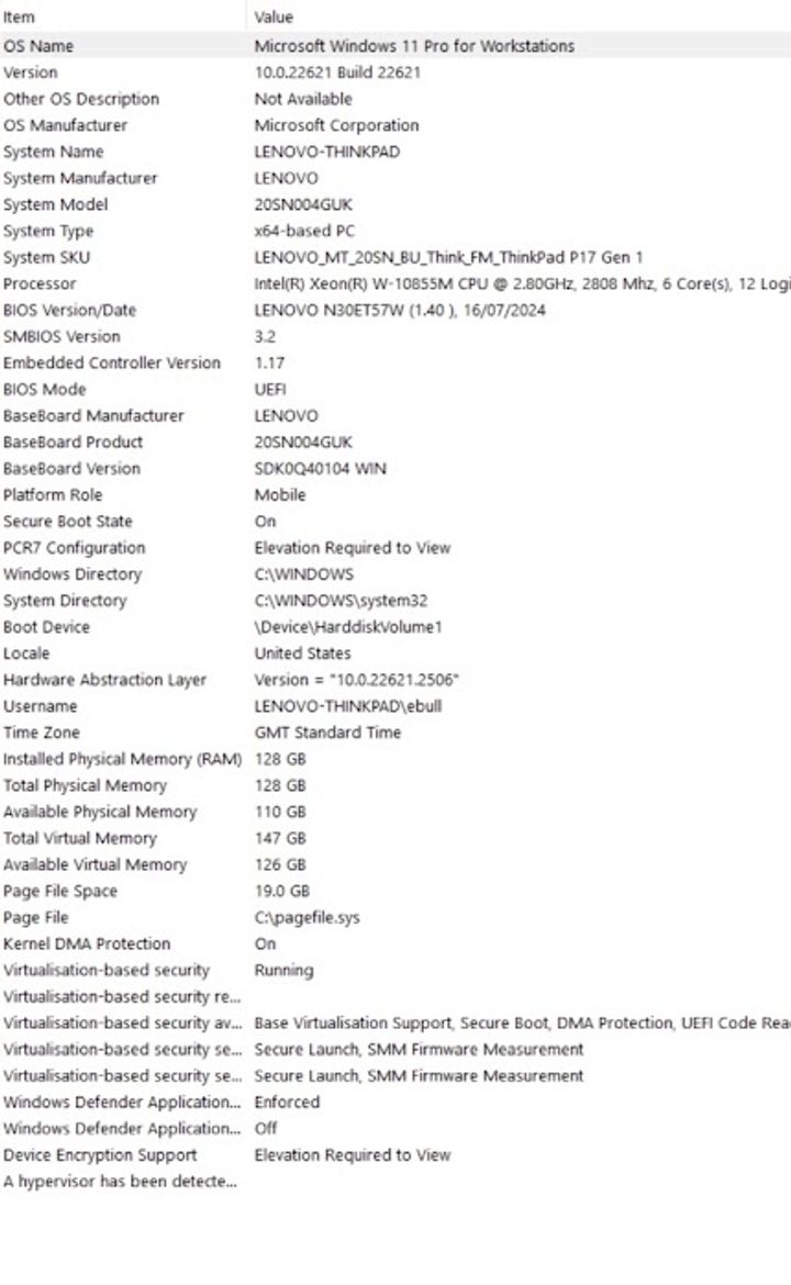 Lenovo ThinkPad 128 GB ram etc.