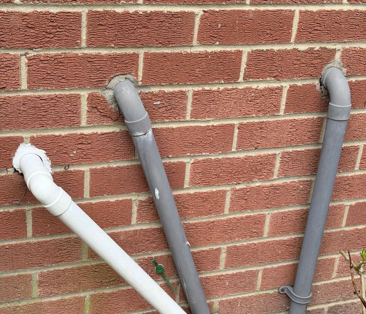 Of the 3 pipes only one is connected, irs been like it for years only it was hidden behind a bush.