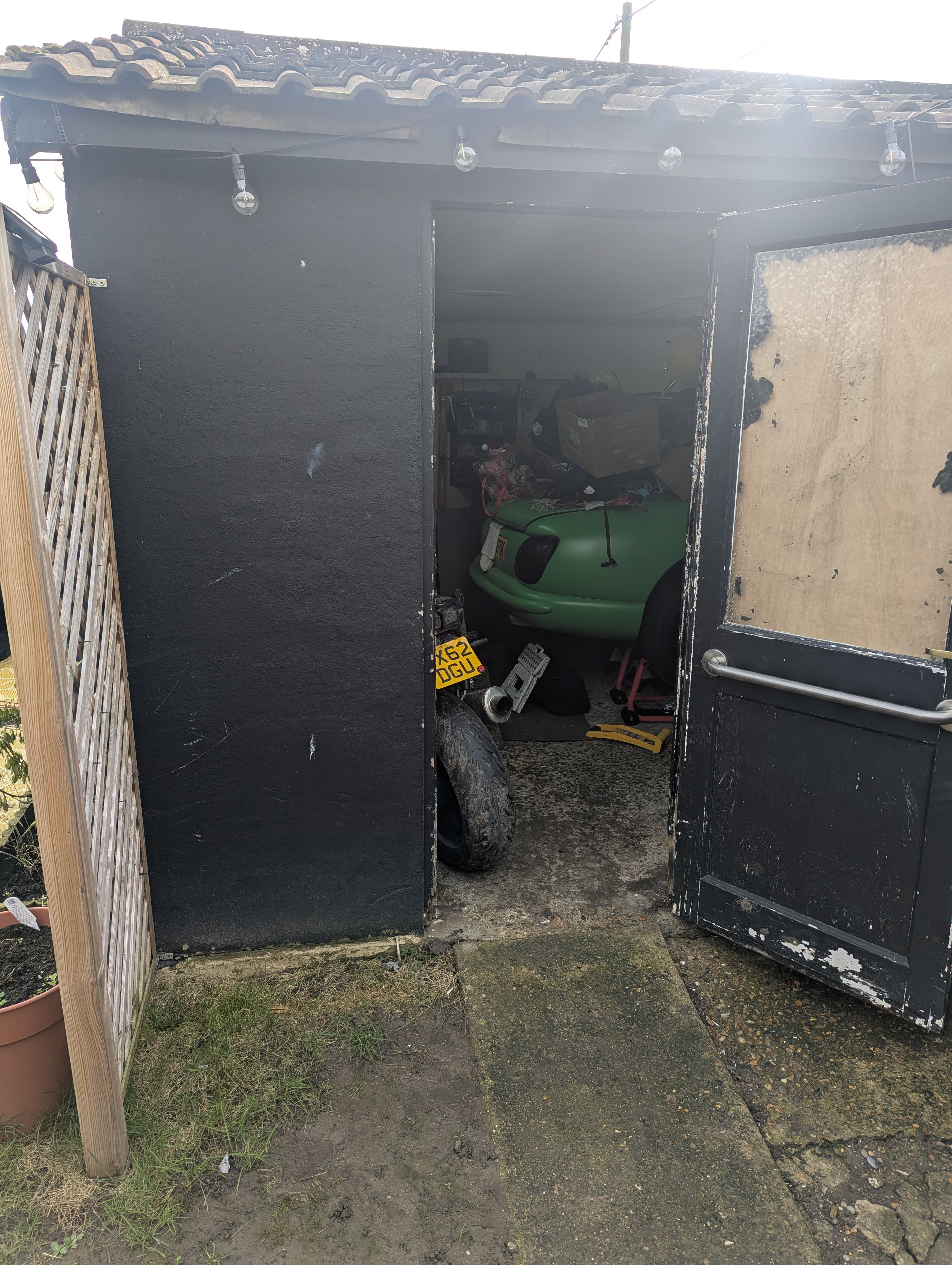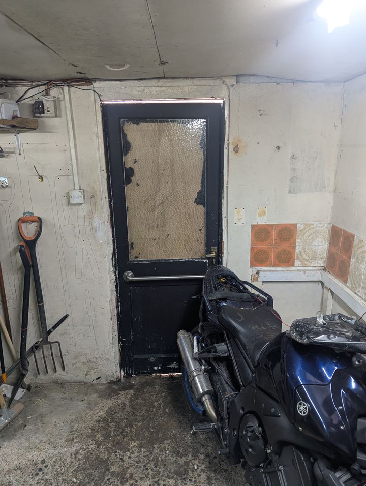 I want to make the side door into my garage wider so it's easier to get bikes into it. The garage has got a solid concrete base and a tiled roof on some lightweight concrete blocks.