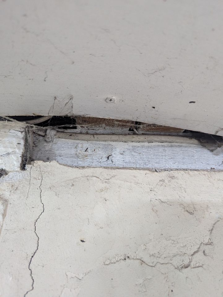 That's just a bit of trim that they've nailed on to the timber behind to hide a gap between the top of the door frame and the timber that sitting on top of the blocks