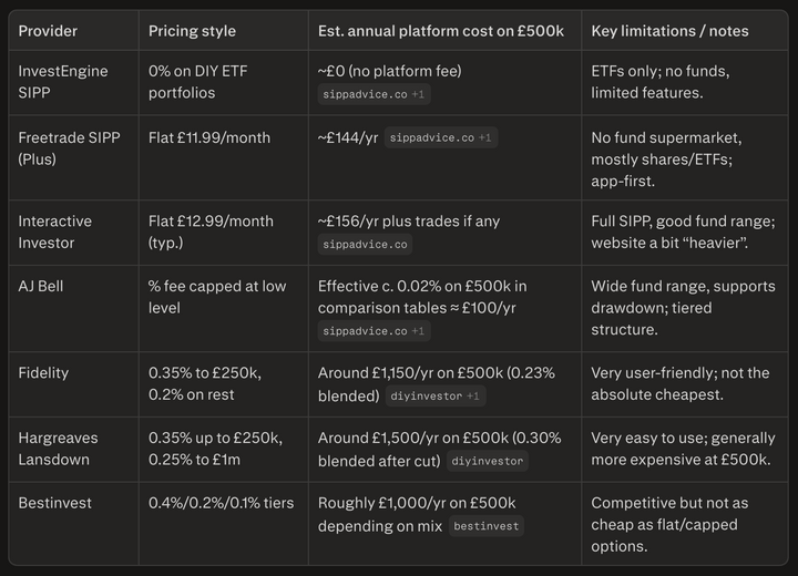 PS: when comparing SIPP platforms, you should check the small print to see if they charge any additional annual drawdown fees. Thankfully this seems to be rarer nowadays.