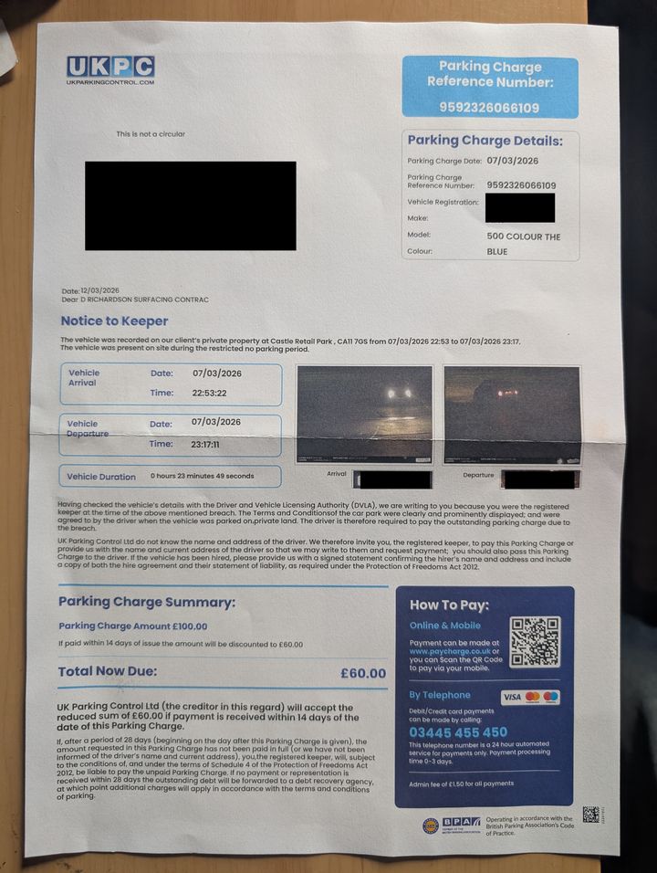 Please, spare me the moral high ground that some of you are sitting on. I'm just trying to help the driver for the heinous 'crime' of entering a free car park and parking for 23 minutes.