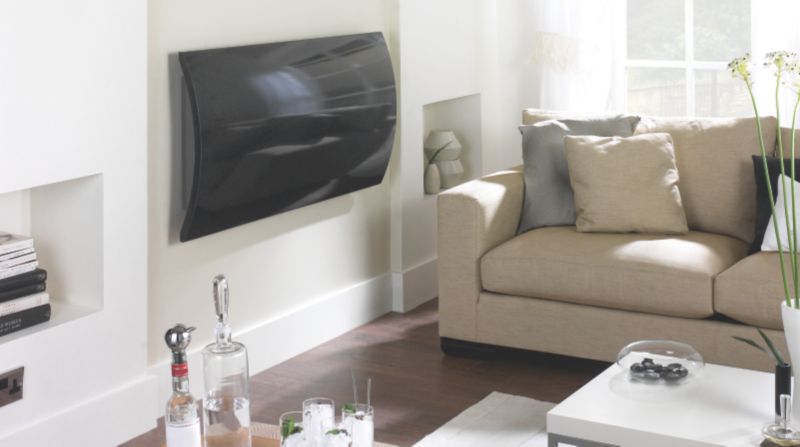 Has a very small water chamber running along the middle of the radiator which then warms the curved 'stone' face.