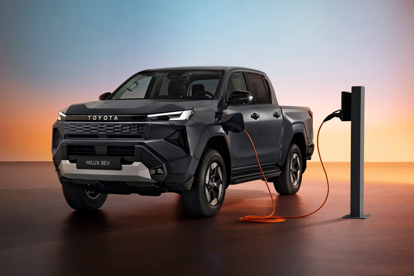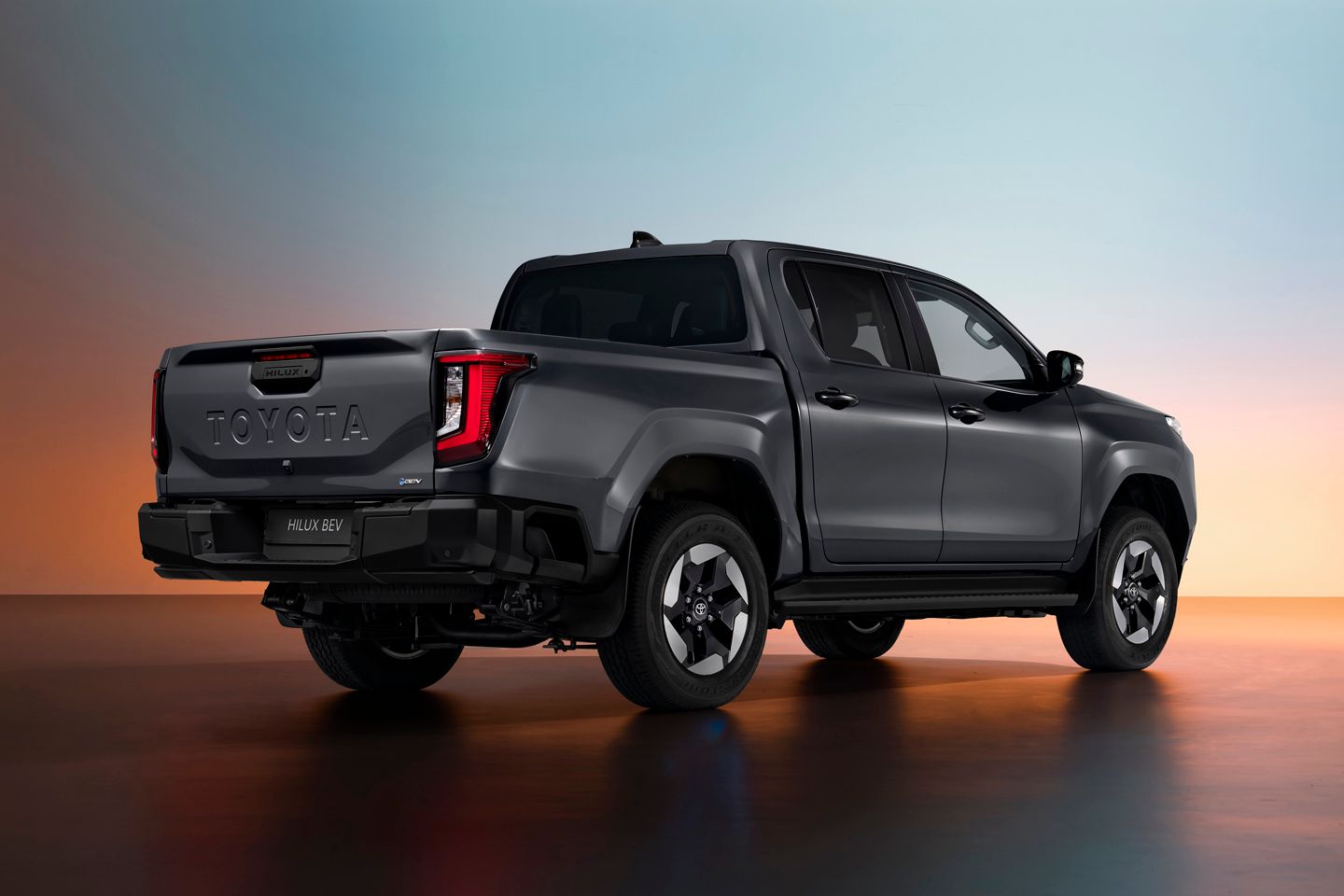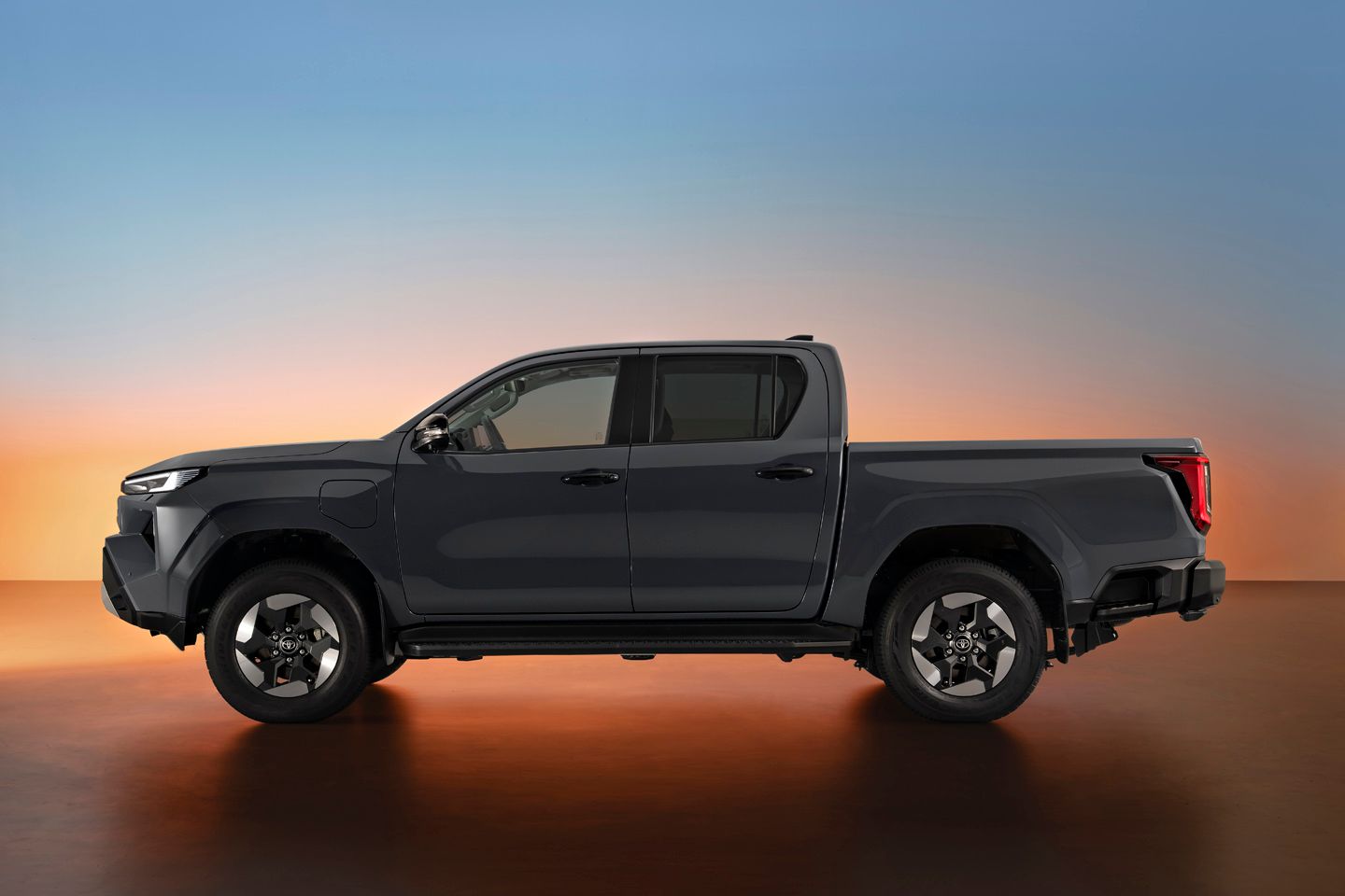Toyota suggests the Hilux redesign is ‘tough and agile’, so the front end gets an angrier appearance (complete with the old school ‘TOYOTA’ font) and the electric truck gets its own look. The bigger refresh has been inside, said to benefit from a Land Cruiser-style ‘all-round elevation in sensory quality’. So hopefully everything will feel, look and maybe even smell a bit nicer; screens are now up to 12.3-inches for both driver and dash, there are more USB ports than before and safety features are everywhere, from Low Speed Acceleration Suppression to Safe Exist Assist. More will follow over the air in time; told you this was a throughout modern makeover of the Hilux.